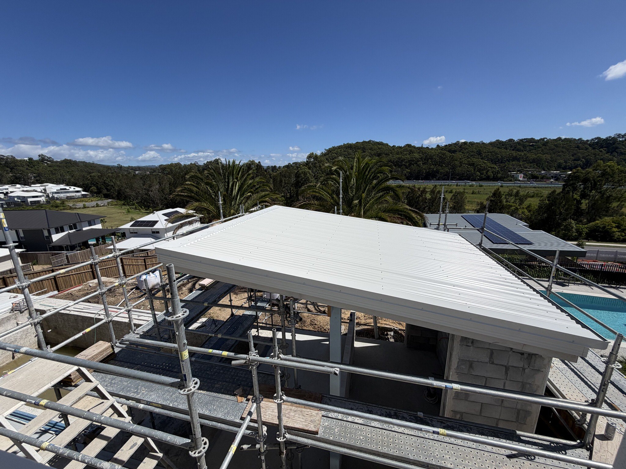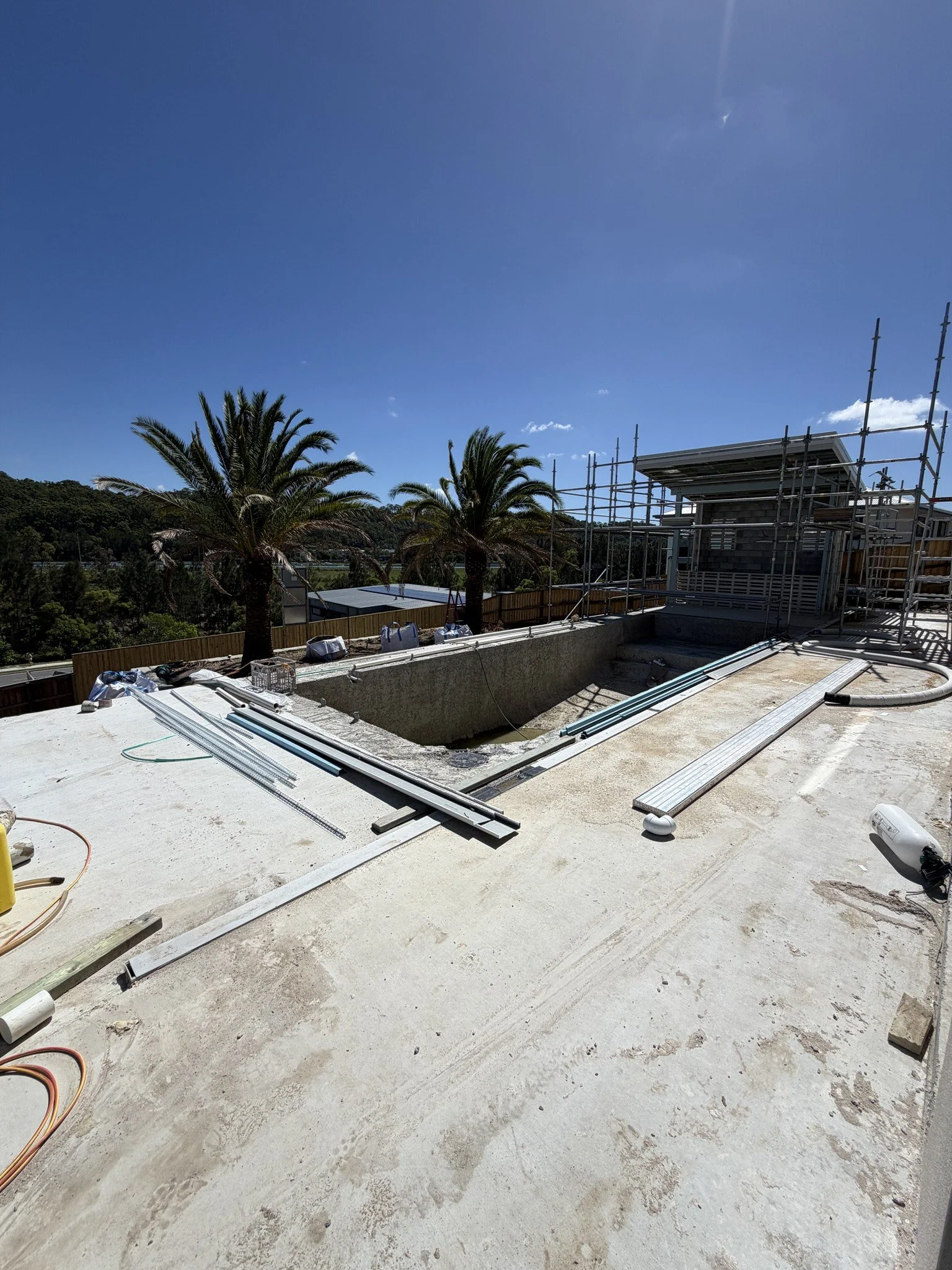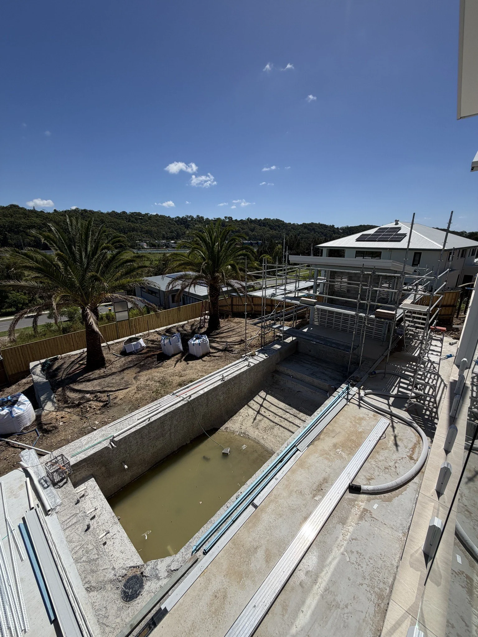 The backyard is your private retreat. A stunning mineral pool with feature tiling anchors the outdoor space, surrounded by three established 3-metre date palms that add instant maturity and tropical ambience. An outdoor firepit creates the perfect gathering spot for cooler evenings, whilst the outdoor shower offers convenient pool-side convenience. The large, flat grassed area provides plenty of space for children's play or weekend cricket matches.